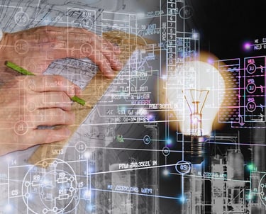 Realizzazione di progetti per impianti civili e industriali, completi di schemi tecnici, computi e stime.